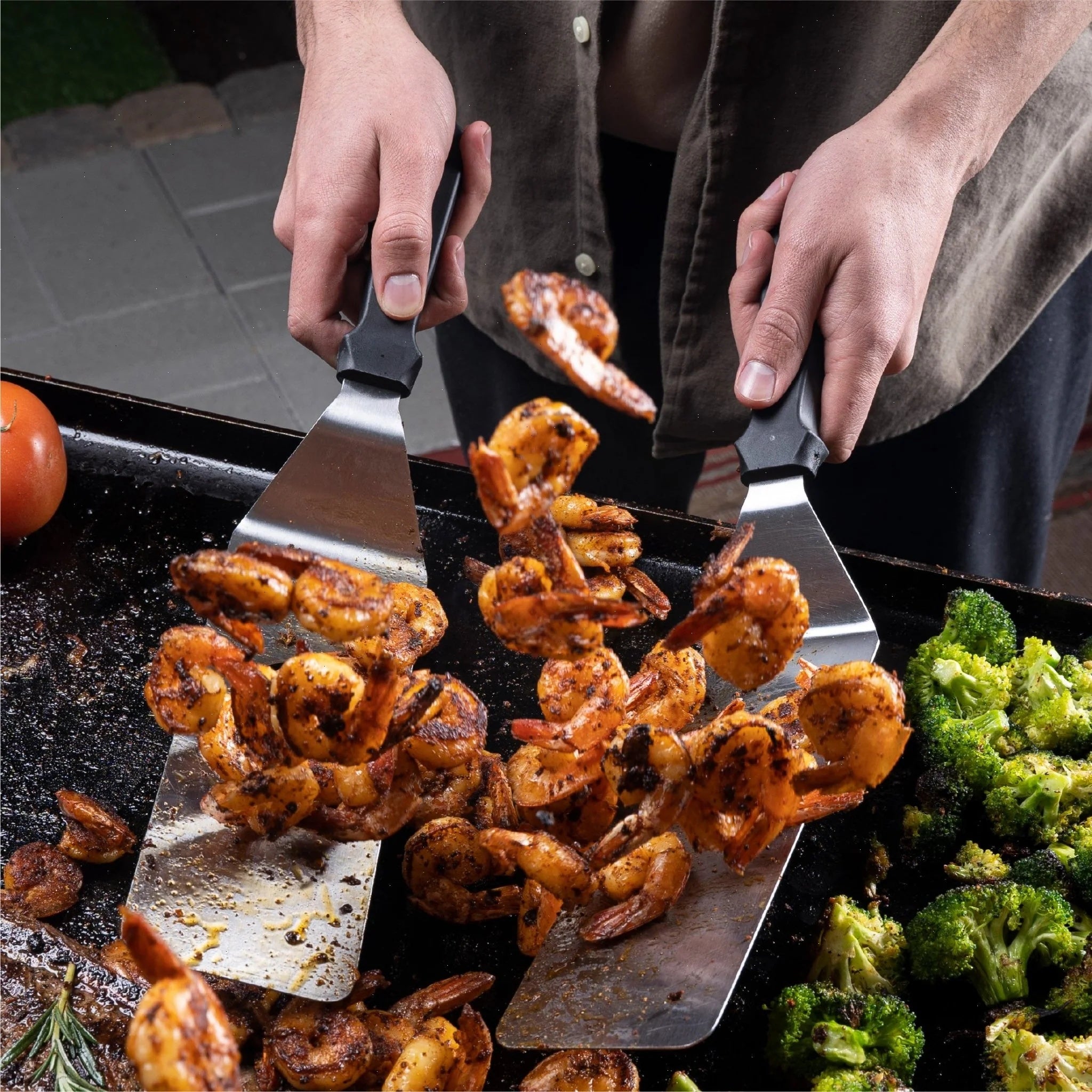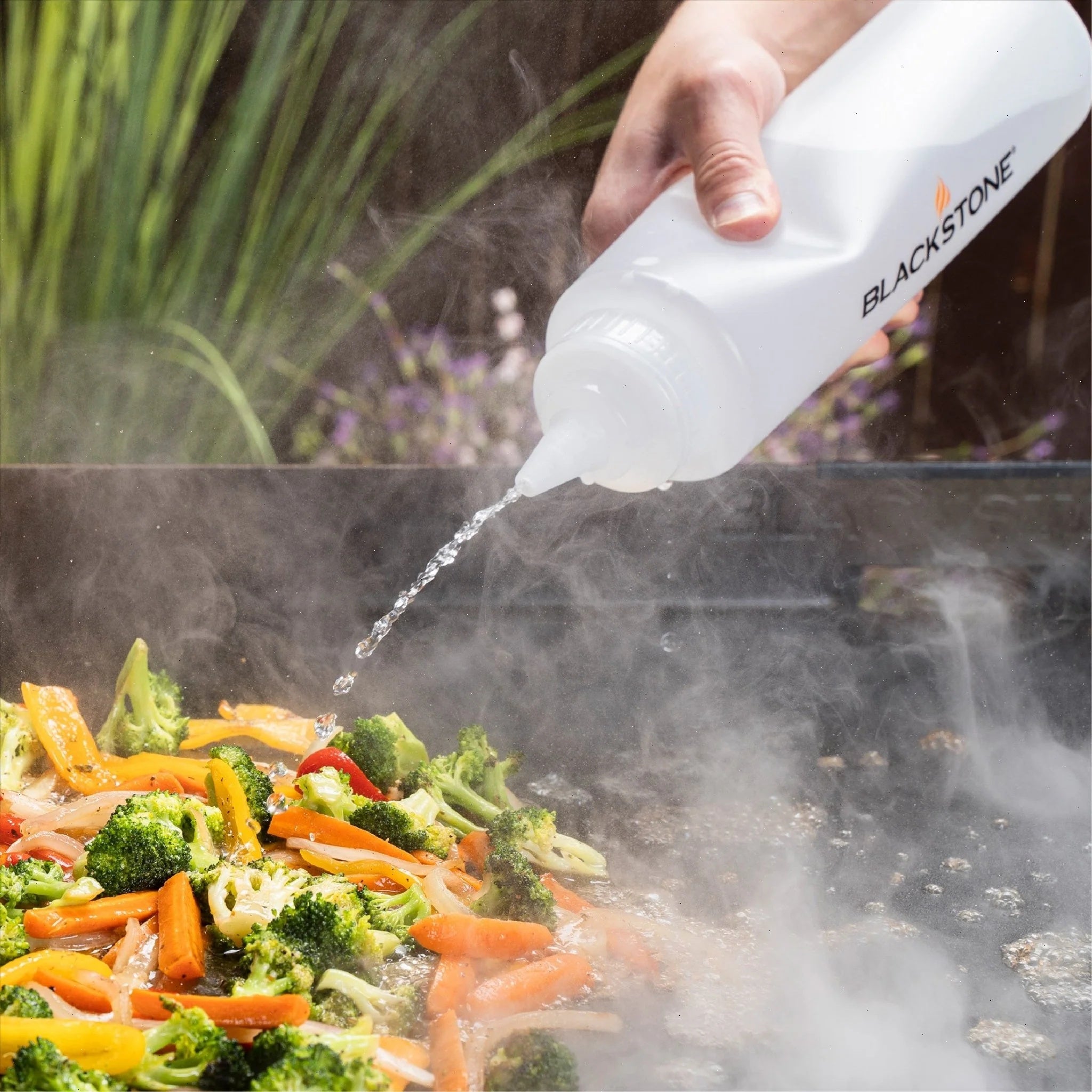 - Kit includes griddle spatulas (Qty. 2), 32 oz squeeze bottles (Qty. 2), griddle scraper (Qty. 1), basting dome (Qty. 1), 14” tongs (Qty. 1), 14” meat fork (Qty. 1), basting brush (Qty. 1), scrub pads (Qty. 10) and scrub pad handle (Qty. 1), and utility apron (Qty. 1).