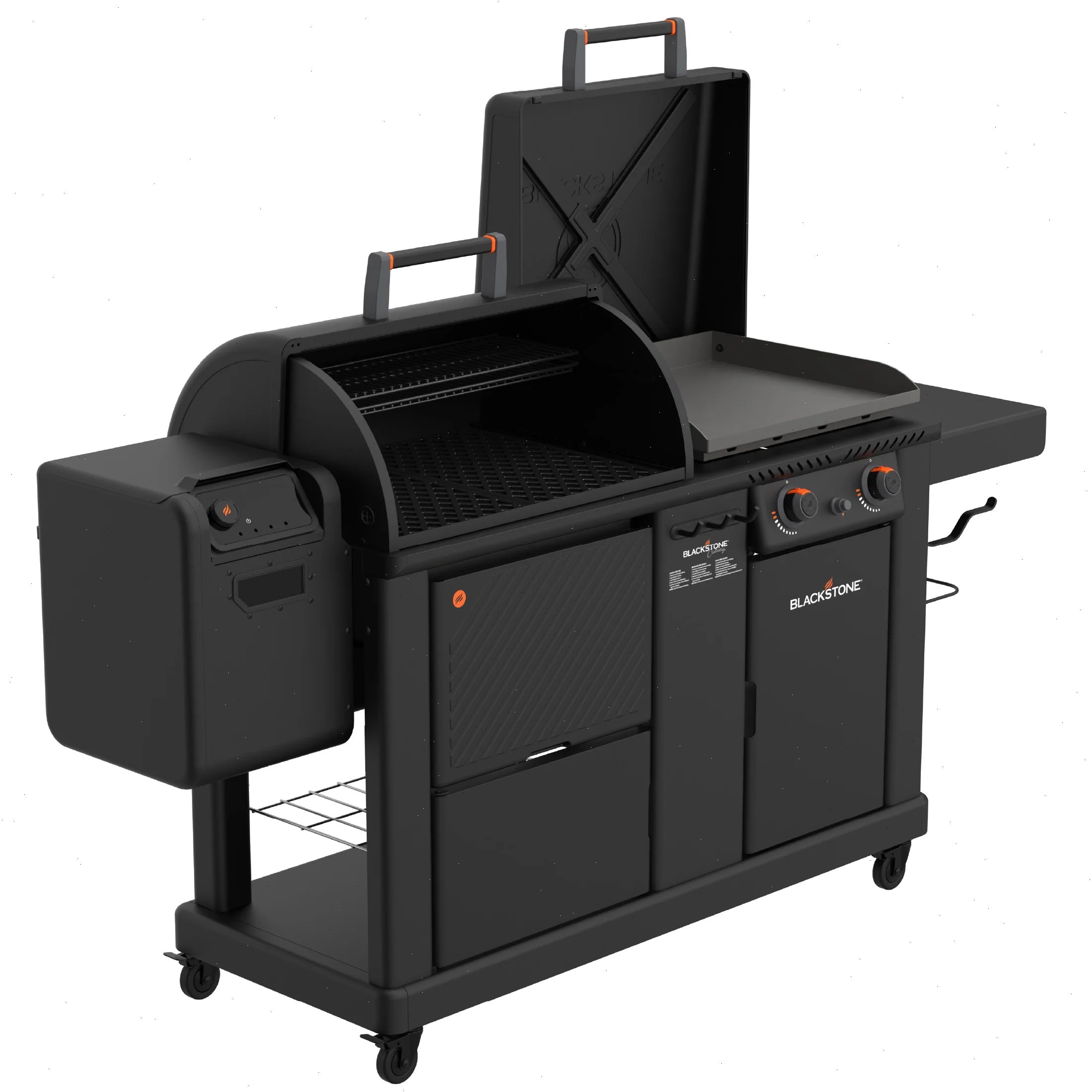 - Double walled rollback hood: Smooth rolling hood allows for easy access to your cooking space and provides improved heat and smoke retention.